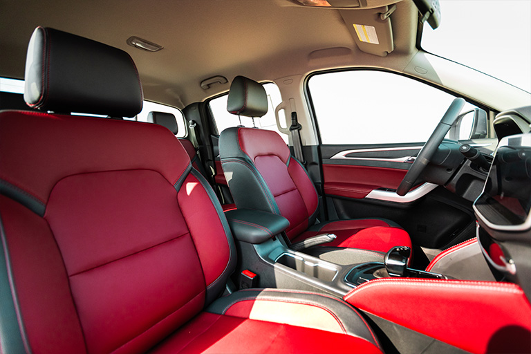 Inside the T70, the "utility" tag fades away in favor of a passenger-car experience. Maxus has employed "NVH Mute Design," which significantly reduces vibrations and engine roar, making it easy to hold a conversation even at highway speeds. The red and black interior color scheme (on Pro models) adds a sporty, high-end feel rarely found in this segment.